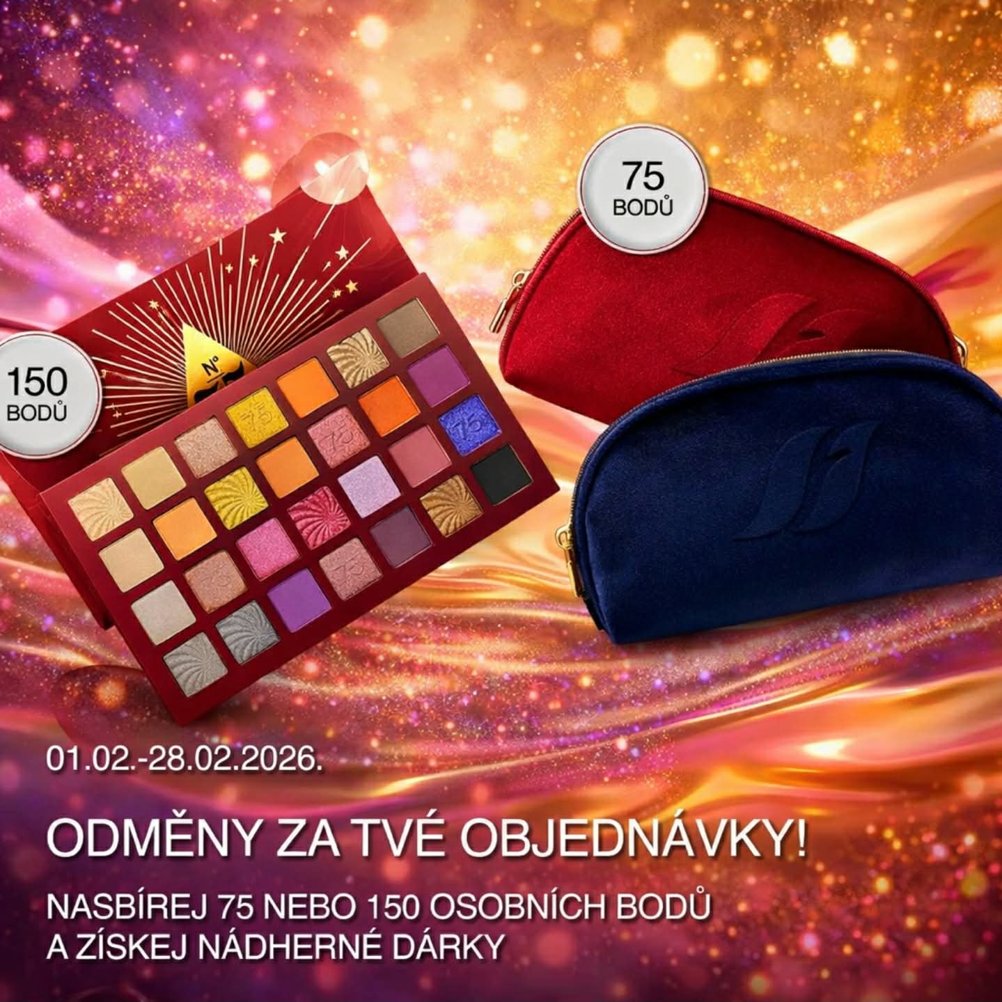 Kabelka dle vlastního výběru a mega paletka luxusních očních stínů? Tyto 2 dárky můžeš mít pokud během února objednáš celkem za 150 osobních bodů.